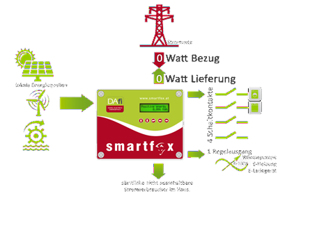 Der „DAfi-SMARTFOX“ erfasst in einem Abstand von 0,5 - 2 sek. die aktuelle Überschussenergie einer elektrischen Anlage.